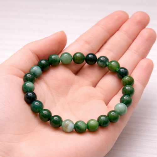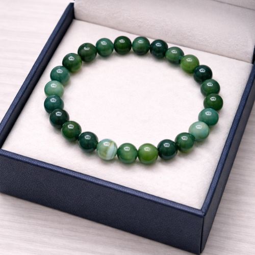 Green Banded Agate gently clears blocked energy pathways and helps maintain balance between mind and heart, making it a perfect everyday healing bracelet.