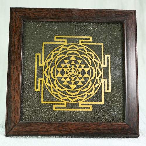 The Shree Yantra is considered the queen of all yantras, representing the cosmic energies of Goddess Lakshmi. When crafted with pyrite dust, it amplifies vibrations of wealth, positivity, and protection. Pyrite, also known as “Fool’s Gold,” is believed to carry the frequency of money, confidence, and power — making this combination extremely potent for material as well as spiritual growth.