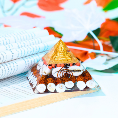An Orgonite Pyramid is a unique blend of resin, crystals, and metal shavings, designed to convert negative energy into positive energy. When combined with Laxmi energy, it becomes a magnet for wealth, happiness, and abundance.