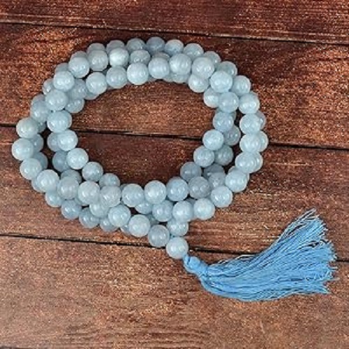 An Aquamarine Mala is a sacred string of beads, traditionally consisting of 108 natural Aquamarine beads, used for mantra chanting (japa), meditation, and daily wear.