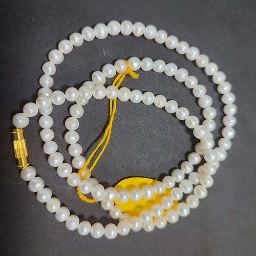 A Pearl Mala Round is a sacred string of round-shaped natural pearl beads, usually consisting of 108 beads, used for mantra chanting (japa), meditation, and wearing as a spiritual necklace.