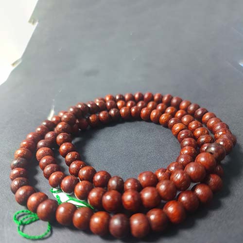 A Rakta Chandan Mala is a sacred string of beads, traditionally consisting of 108 beads crafted from natural Red Sandalwood wood. It is used for japa (mantra chanting), meditation, and wearing as a spiritual necklace.