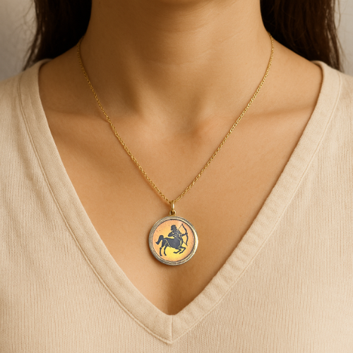 The Dhanu Rashi Yantra Pendant helps balance Jupiter energy and restore positivity.