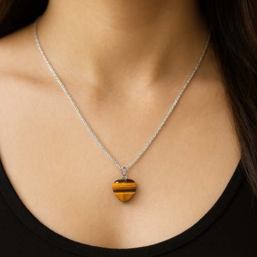 The Tiger’s Eye Pendant (Heart Shape) is a powerful crystal jewelry piece that blends inner strength with emotional balance. Known as the stone of courage and protection, Tiger’s Eye helps overcome fear, boost confidence, and attract success—while the heart shape enhances love, emotional healing, and self-belief.