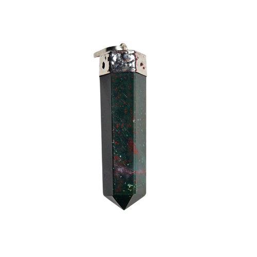 The Blood Stone Pendant, also known as Heliotrope, is a powerful crystal of strength, courage, and vitality. Revered since ancient times, Blood Stone is known for its deep grounding energy, strong protective qualities, and ability to boost physical and emotional resilience.