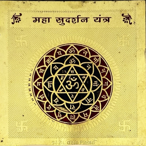 The Maha Sudarshana Yantra is a powerful divine protector that removes negativity and ensures victory and safety in life.