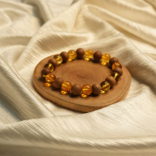 The Sandalwood with Yellow Citrine Bracelet is a beautiful combination of soothing sandalwood and prosperity-attracting citrine beads. It helps promote calmness while inviting wealth and positive energy. Perfect for daily wear, it brings balance, focus, and inner peace.