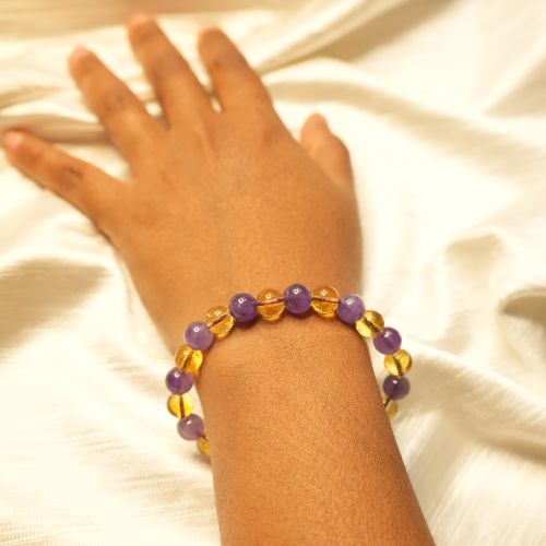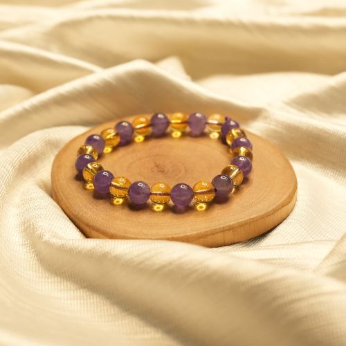 Clean the bracelet regularly and recharge it under sunlight (for Citrine) or moonlight (for Amethyst). Avoid harsh chemicals to maintain its shine and energy.