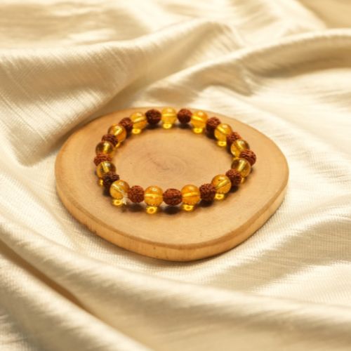 The Rudraksha Citrine Bracelet is a powerful combination of sacred Rudraksha beads and energizing Citrine crystals, known for attracting wealth and positivity. It helps balance spiritual energy while promoting success and confidence. Perfect for daily wear, it brings prosperity, protection, and inner strength.